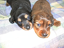 最近、ペットショップを中心にクリーム系の体毛が人気ですが、ドッグショーで圧倒的な強さを誇るのは、なんといってもブラック系です。とくにブラック・タンはベスト。ぜひこの子犬をショーへ参加させてください。お買い得の一頭です。 |